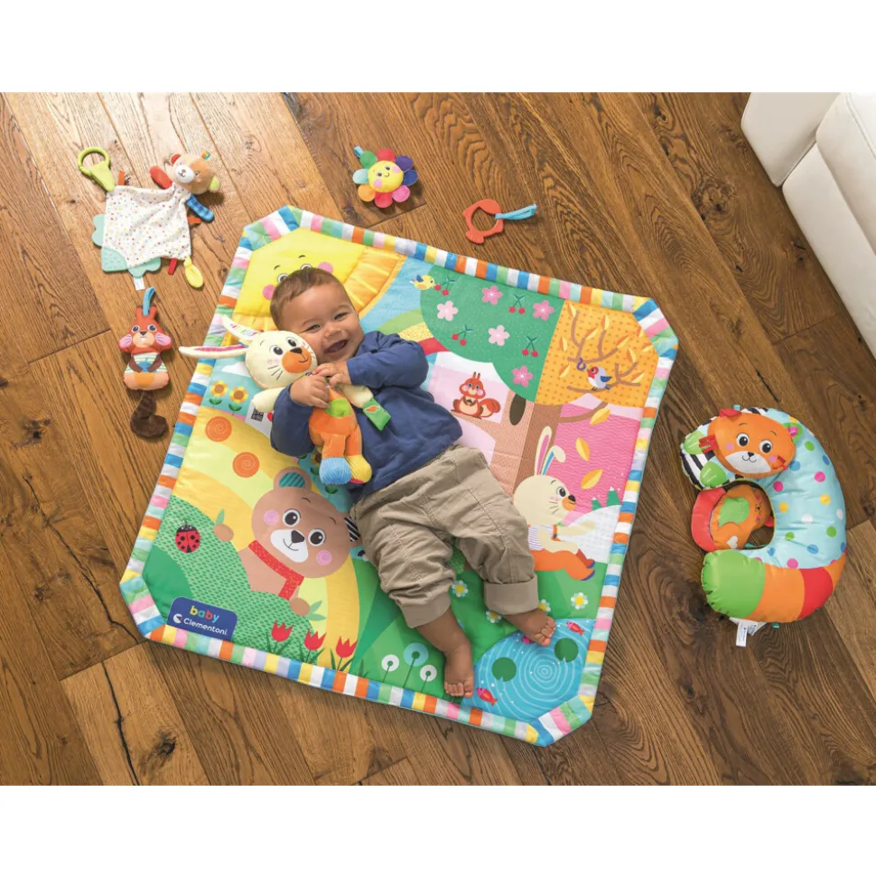 Ontworpen voor de allerkleinsten, om ze te laten spelen in een wereld vol zachtheid! De knuffel is gemaakt van verschillende materialen voor de multisensoriële stimulering van het kind en de ontwikkeling van zijn tastzin tijdens de eerste levensfasen.