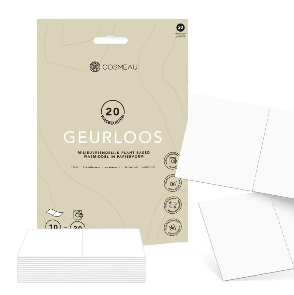 Wasdoekjes hebben niet zo’n sterke geur als bijvoorbeeld pods. Eén strip is ongeveer 4 gram, een pod al snel 25 gram. Door meer chemicaliën en een zwaarder product is het niet mogelijk om net zoveel geur achter te laten als een pod. Daarnaast werkt een geur net iets anders bij een wasstrip. Direct na het wassen zal je de geur bijna niet ruiken. Door wrijving, zoals lopen, rennen, breken de microgeur capsules los en zal er een licht subtiele geur ontstaan. Wil je een geurboost tot 3 maanden? Combineer dan met de milieuvriendelijke geurbooster van Cosmeau.