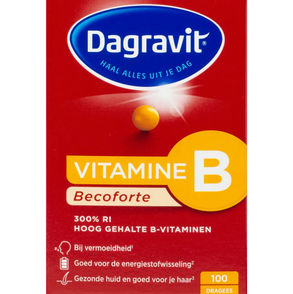 Dagravit Becoforte B bevat een hoge dosering B-vitaminen van 300% van de Aanbevolen Dagelijkse Hoeveelheid, die gewenst kan zijn bij vermoeidheid, voor het behoud van een gezonde huid en goed is voor je haar en energiestofwisseling.