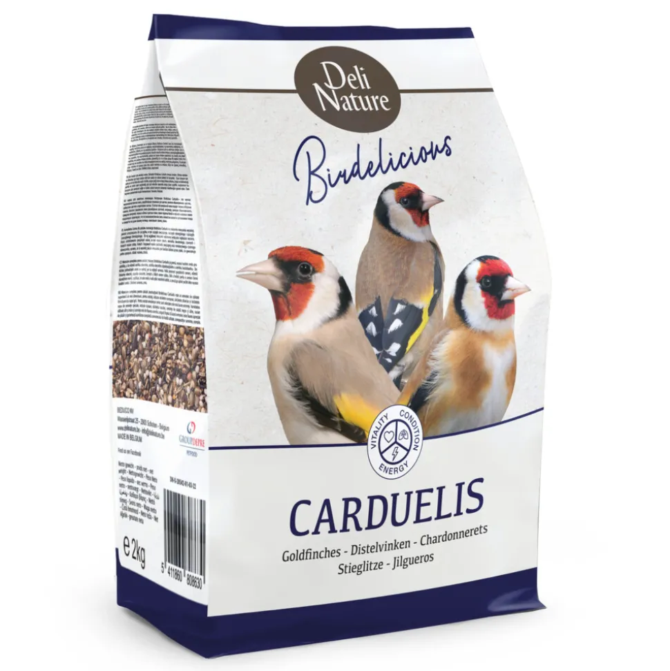 Aves Cultura Carduelis van Deli Nature voor kleine distelvink, majoor distelvink en grijskop distelvink. Bevat een grote variatie aan zaden, meer dan 10 soorten. Heeft een zwaardere mengeling met een hoog aandeel kempzaad en nigerzaad. Ideaal voor koudere landen en kweek. Verkrijgbaar in 750gr en 2kg.
