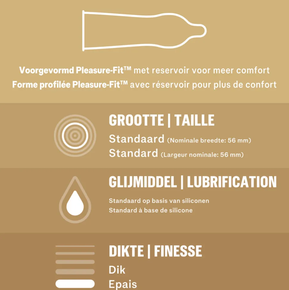 - Lees de gebruiksaanwijzing aan de binnenkant van de verpakking aandachtig door, vooral bij gebruik van het condoom voor anale of orale seks.