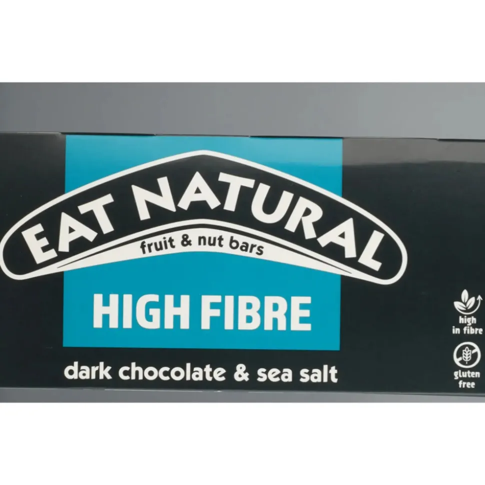 Eat natural Noten Bar Pure Chocolade & Zeezout met donkere chocolade, vijgen en pinda’s maken van de Eat Natural Fibre Packed Bar een echte traktatie. Deze reep is net zo rijk aan smaak als aan vezels. De vijgen, abrikozen, amandelen en kokosnoot in de reep dragen daar allemaal hun steentje aan bij. In totaal bestaat deze reep maar liefst voor 23% uit gedroogd fruit.