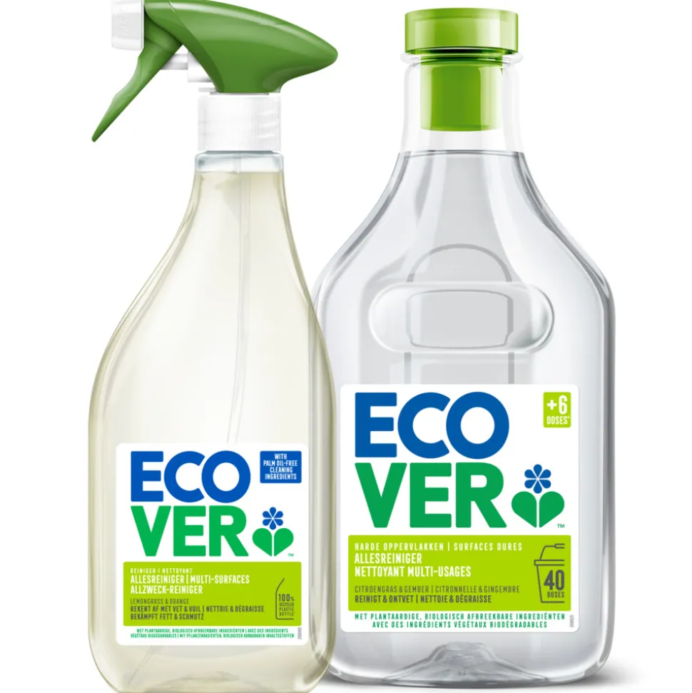 Ecover Citroengras & Gember Allesreiniger is een krachtige en uiterst effectieve allesreiniger waarvan de ingrediënten van plantaardige oorsprong zijn. Het maakt alle oppervlakken hygiënisch schoon en geeft een frisse geur terwijl het geen ongewenste chemicaliën in huis achterlaat. Bovendien is Ecover Allesreiniger gebaseerd op plantaardige en minerale grondstoffen, volledig en snel afbreekbaar voor minimale belasting van het waterleven en niet getest op dieren.