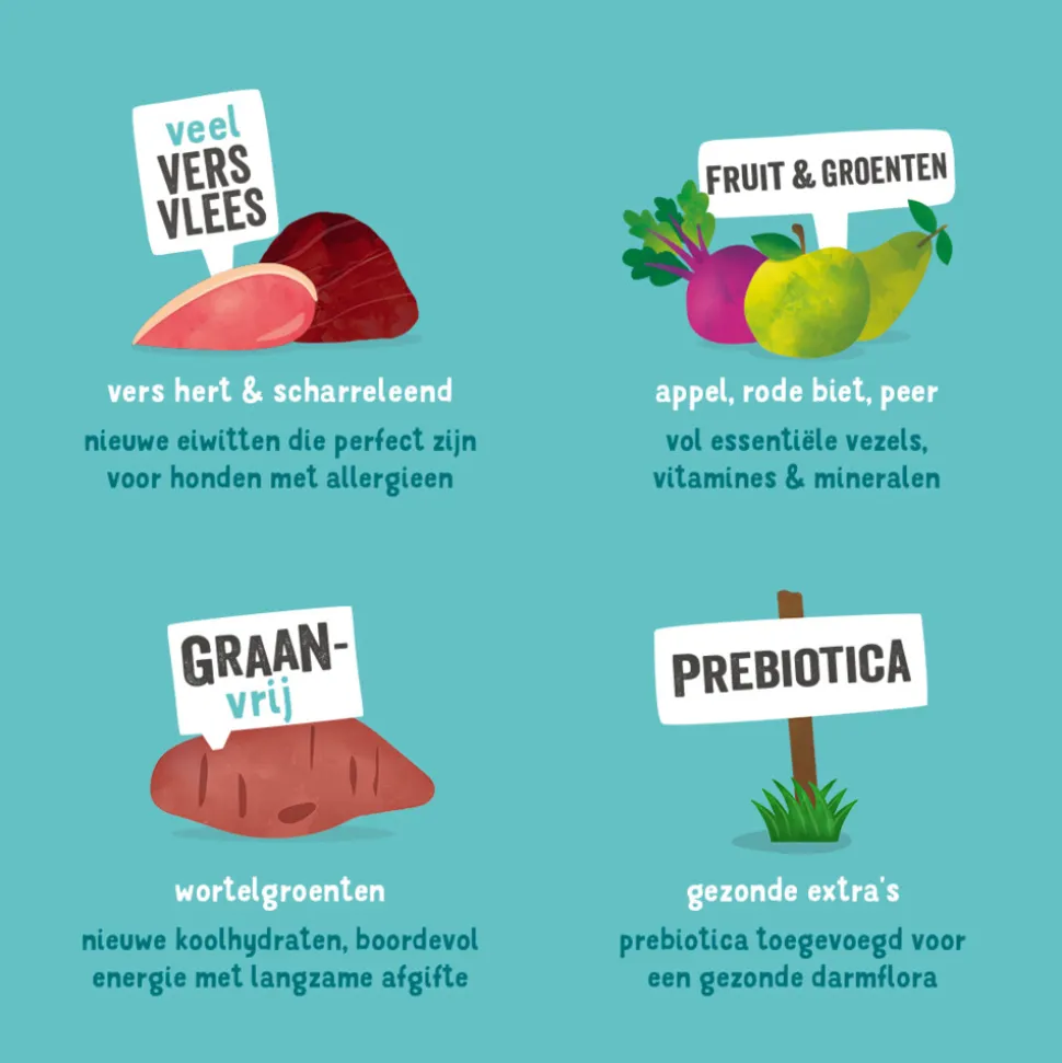 Edgard & Cooper Hondenvoer Vers Hert en Scharrel Eend met appel, rode biet, peer en blauwe bes.