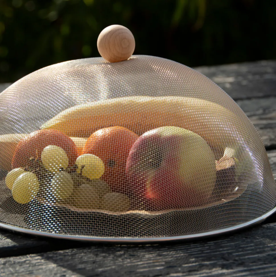 Deze anti-vliegenkap van RVS beschermt het eten en drinken tegen opdringerige insecten. De vliegenkap is niet geschikt voor bescherming tegen fruitvliegjes.