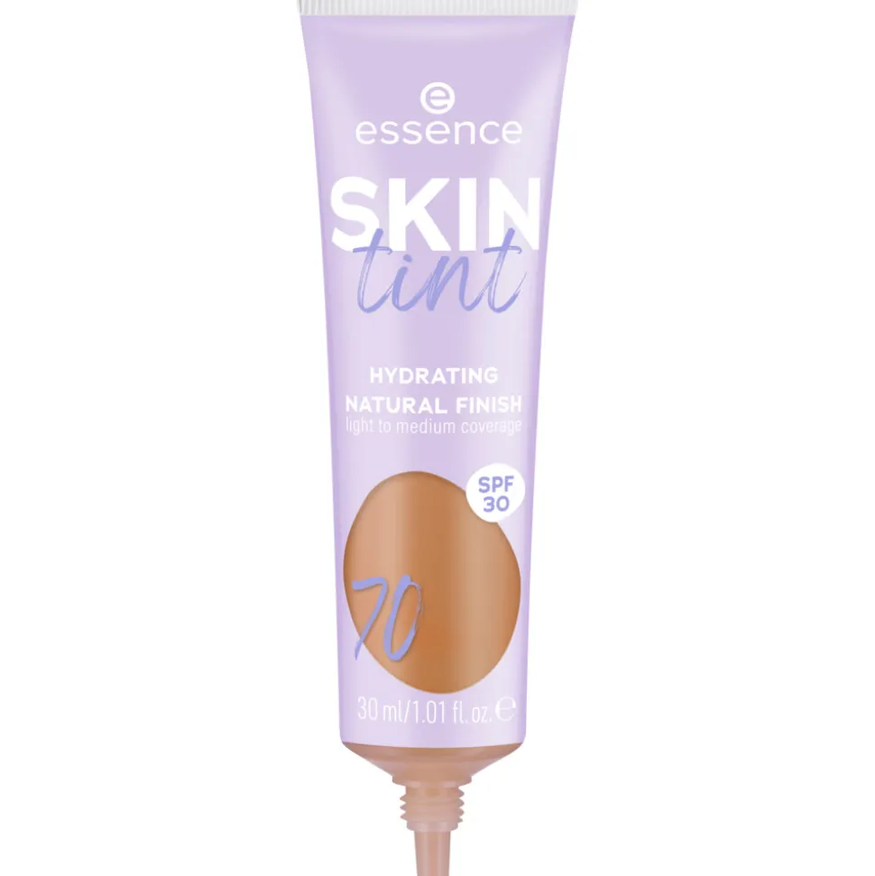 essence SKIN tint 70 egaliseert je huid dankzij de lichte tot medium dekking. Tegelijkertijd voelt het superlicht en comfortabel aan. Onze huidskleur is de lichte versie van onze foundation en verstopt de poriën niet. Het is hydraterend en de vegan ingrediënten bevatten aloë vera en hyaluronzuur. Afhankelijk van de gelegenheid en je stemming kun je de dekking van je essence SKIN tint 70 naar wens intensiveren. Met SPF 30 beschermt het je huid tegen de zon.