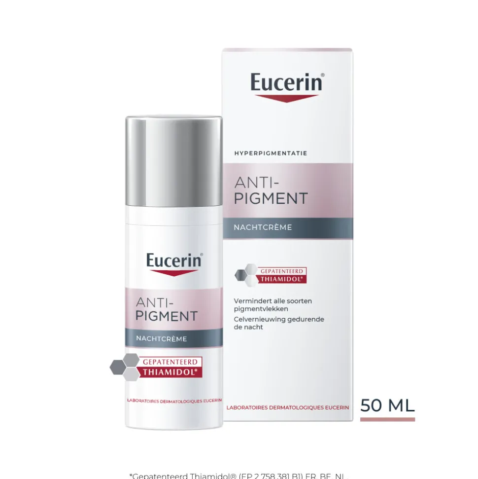 Eucerin Anti-Pigment Dagcrème SPF 30 bevat Thiamidol, een doeltreffend en gepatenteerd ingrediënt dat de wortel van hyperpigmentatie bestrijdt door het verminderen van de melanineproductie. Het is klinisch en dermatologisch aangetoond dat dit pigmentvlekken vermindert en voorkomt dat deze opnieuw verschijnen. De eerste resultaten zijn na twee weken al zichtbaar en deze verbetering houdt aan bij regelmatig gebruik.