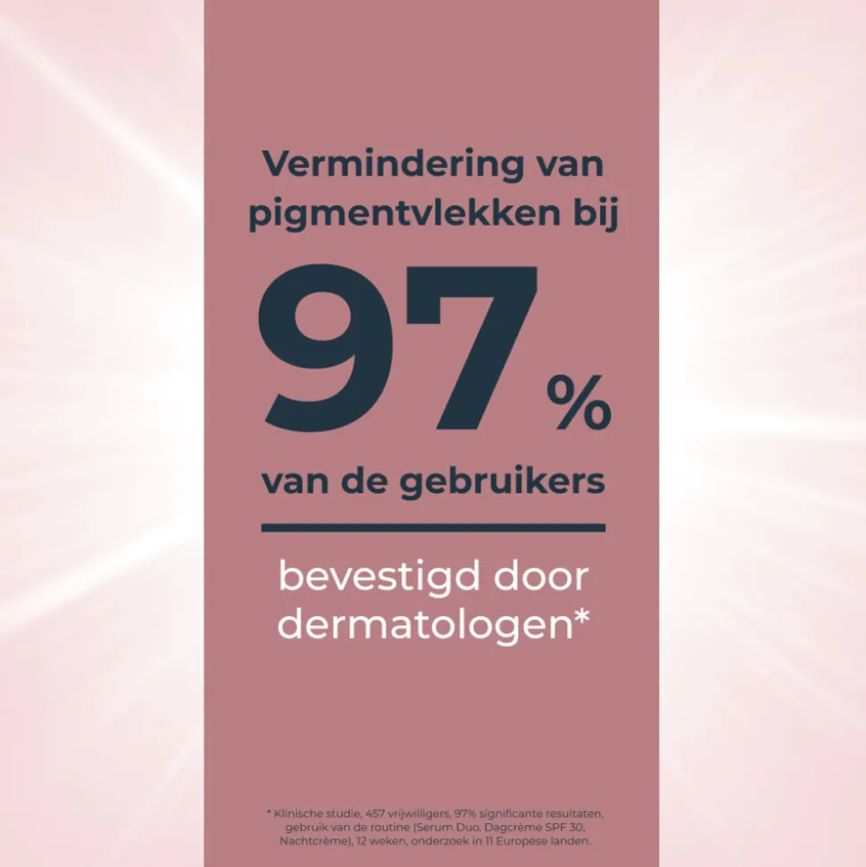 - Vermindert doeltreffend pigmentvlekken en voorkomt dat deze opnieuw verschijnen
