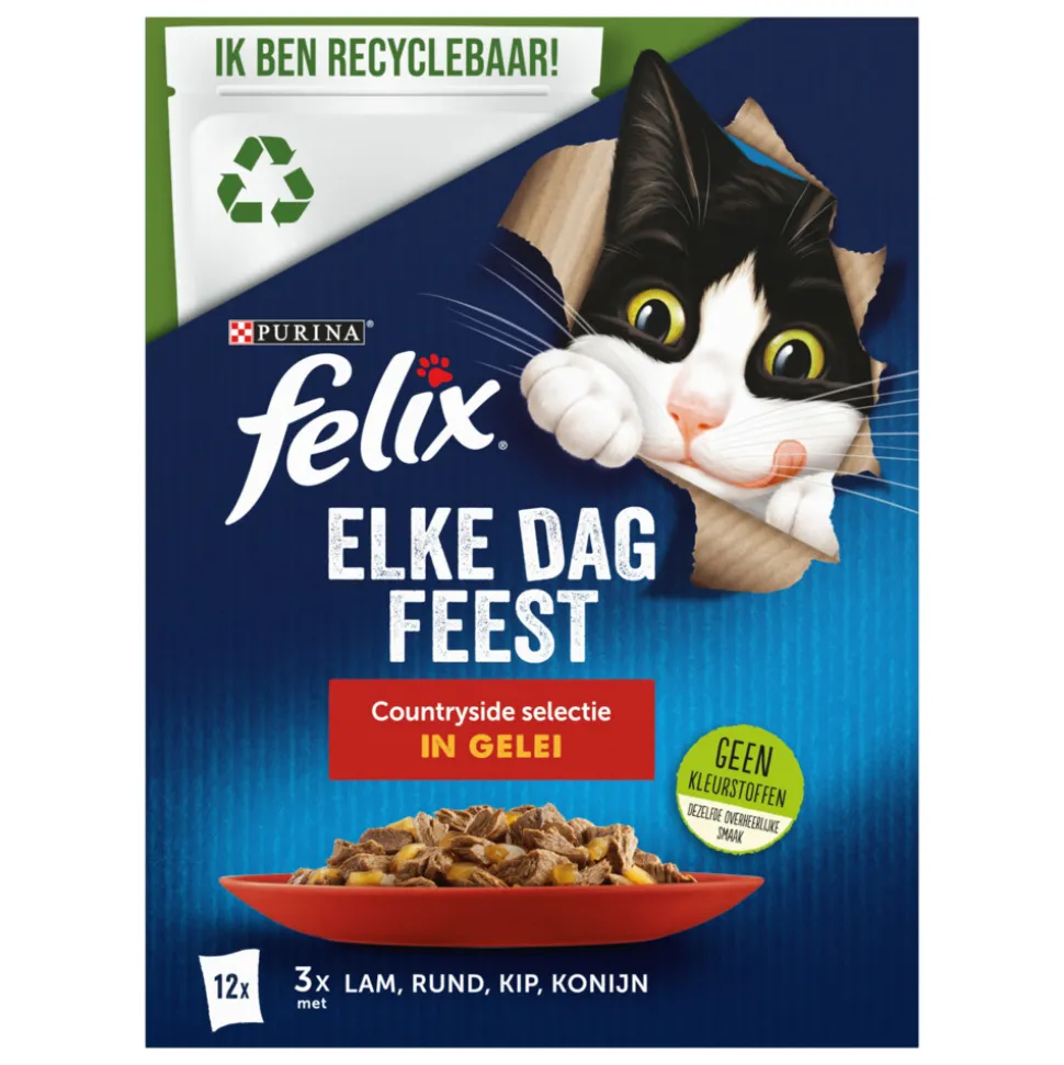 Felix Elke Dag Feest is een assortiment onweerstaanbare maaltijden die er zó lekker uitzien, zó lekker ruiken en zó lekker smaken alsof je het zelf hebt klaargemaakt! Speciaal bereid met zachte stukjes in een overheerlijke gelei.
