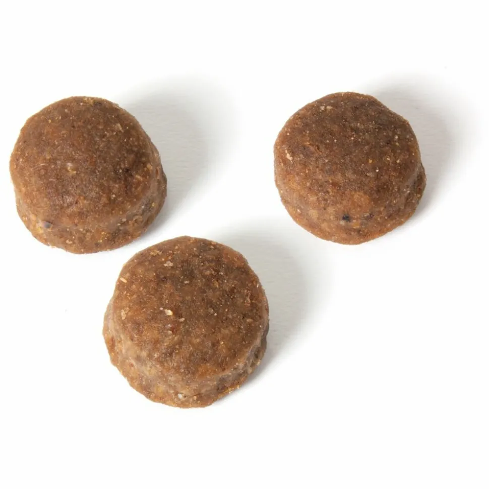 Verse zalm (26%), gedroogde zalm, erwten (15%), gedroogde aardappel (15%), gevogeltevet, gedroogde bietenpulp, zalmolie (2%), gedroogde johannesbrood, lijnzaad, eipoeder, biergist, inuline (bron van FOS), mineralen, gedroogde wortel (0,2%), brandnetel (0,2%), Echinacea (0,2%), gedroogde tomaat (0,15%), gedroogde appel (0,15%), gedroogde mango (0,15%), gedroogde pruimen (0,15%), gedroogde banaan (0,15%), tijm (0,15%), basilicum (0,15%), spirulina (0,15%), cranberry (0,1%), selderij (0,1%), glucosamine, chondroïtine.