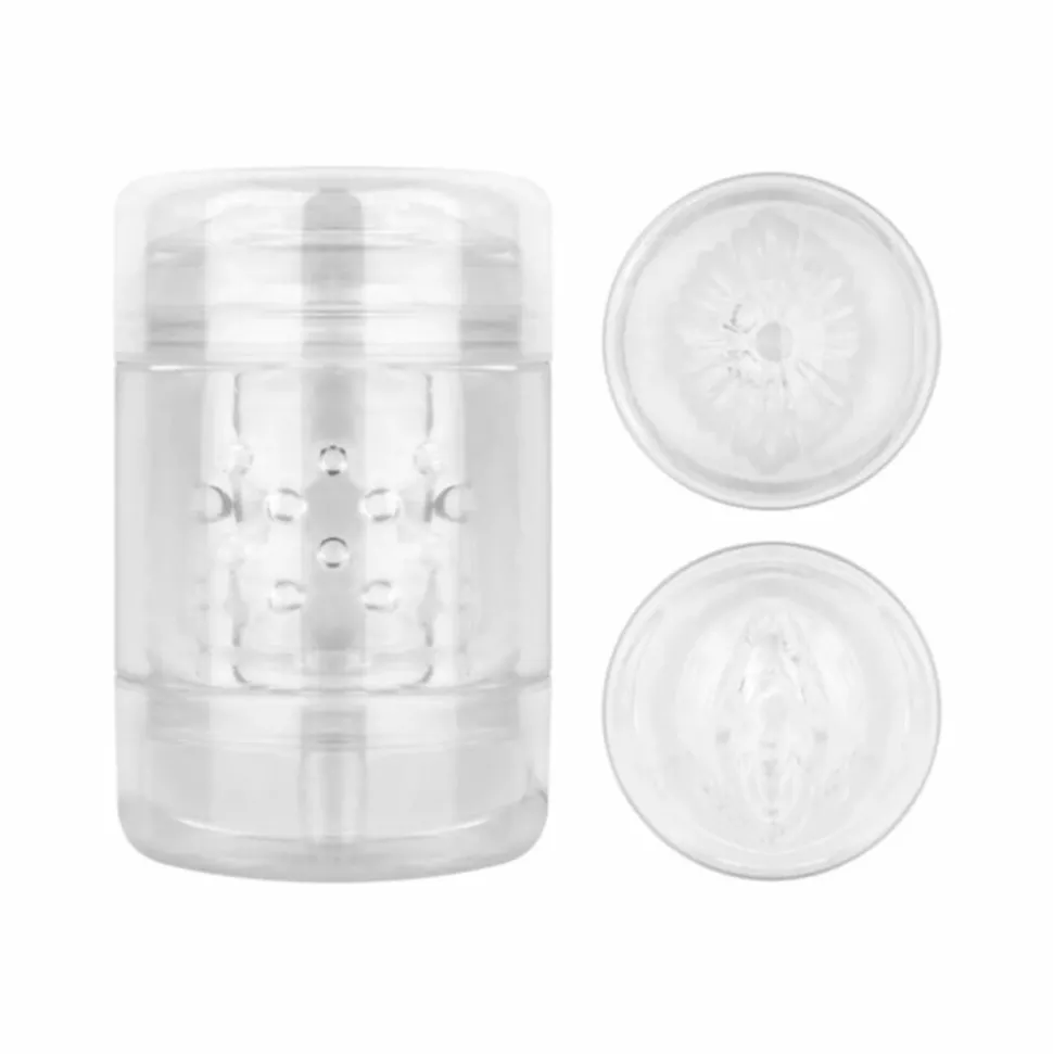 Geniet van een intense penis stimulatie met deze transparante dubbelzijdige masturbator. Deze masturbator heeft een vaginale en anale opening, een rekbaar en flexibele sleeve en een stimulerende geribbelde binnenkant. Doordat de masturbator transparant is kan je alles zien, wat de ervaring extra opwindend maakt. Dankzij het compacte formaat kan je deze masturbator makkelijk meenemen. Verwijder de sleeve na gebruik uit de casing en maak het grondig schoon met water en toycleaner of een milde antibacteriële zeep.