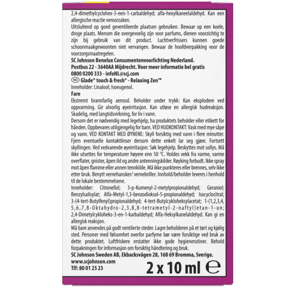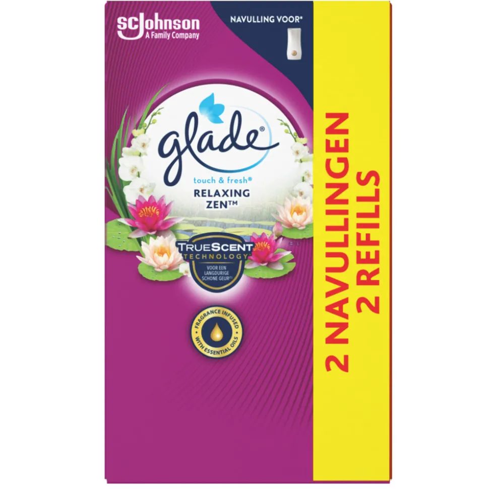 Glade Touch & Fresh Relaxing Zen duo navulling verspreidt een ontspannende geur van verse appel, bloemen en rustgevende sandelhout door je huis.