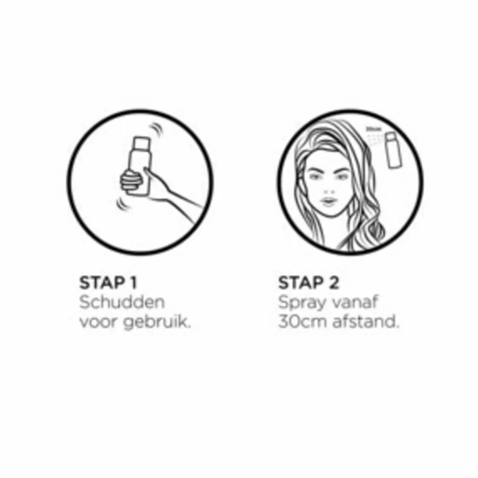 HOW-TO: Voor totale fixatie, spray gelijkmatig over het haar vanaf 30cm . Voor gedeeltelijke fiaxtie, spray selectief op gescheiden haar plukken.