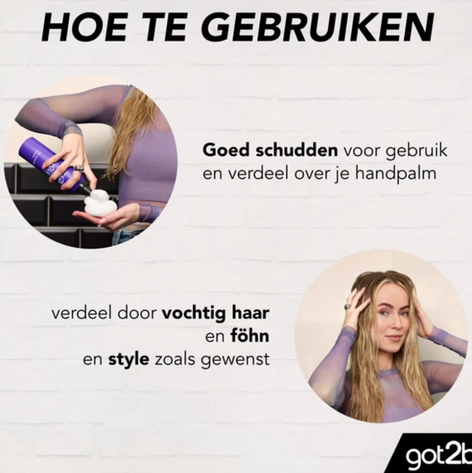 Met got2b Volumania Volumizing Mousse geef je je haar meer volume van de haaraanzet tot in de puntjes.