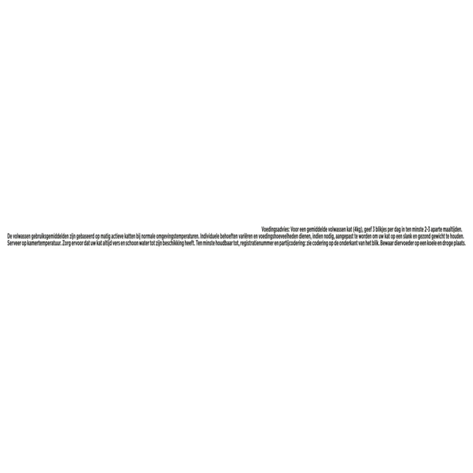 Voor een gemiddelde volwassen kat (4kg), geef 2 tot 3 blikjes per dag in ten minste 2-3 aparte maaltijden.
