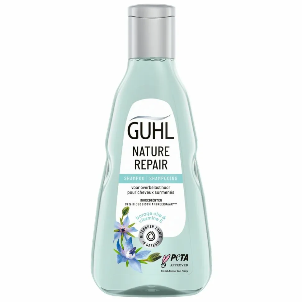 Guhl Nature Repair shampoo dringt diep door in het haar om het effectief te herstellen en versterken. Verzorgt het haar, helpt tegen invloeden van buitenaf en geeft het een gezonde glans.