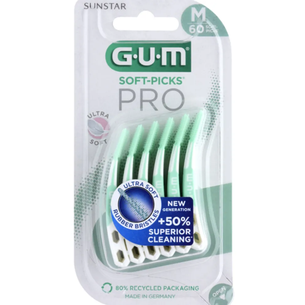 Met onze populaire rubberen interdentale microborstels kun je zacht en effectief reinigen daar waar je tandenborstel alleen niet bij kan. GUM® SOFT-PICKS® PRO helpt bij het verwijderen van voedselresten en tandplak die tussen je tanden zijn verborgen dankzij de zachte, flexibele rubberen borstelharen die comfortabel tussen de tanden glijden voor een zachte, maar diepe reiniging. Deze microborstel biedt ook superieur tandvlees- en tandcomfort – het is ontworpen zonder latex, hout of metaal – en masseert zelfs je tandvlees.