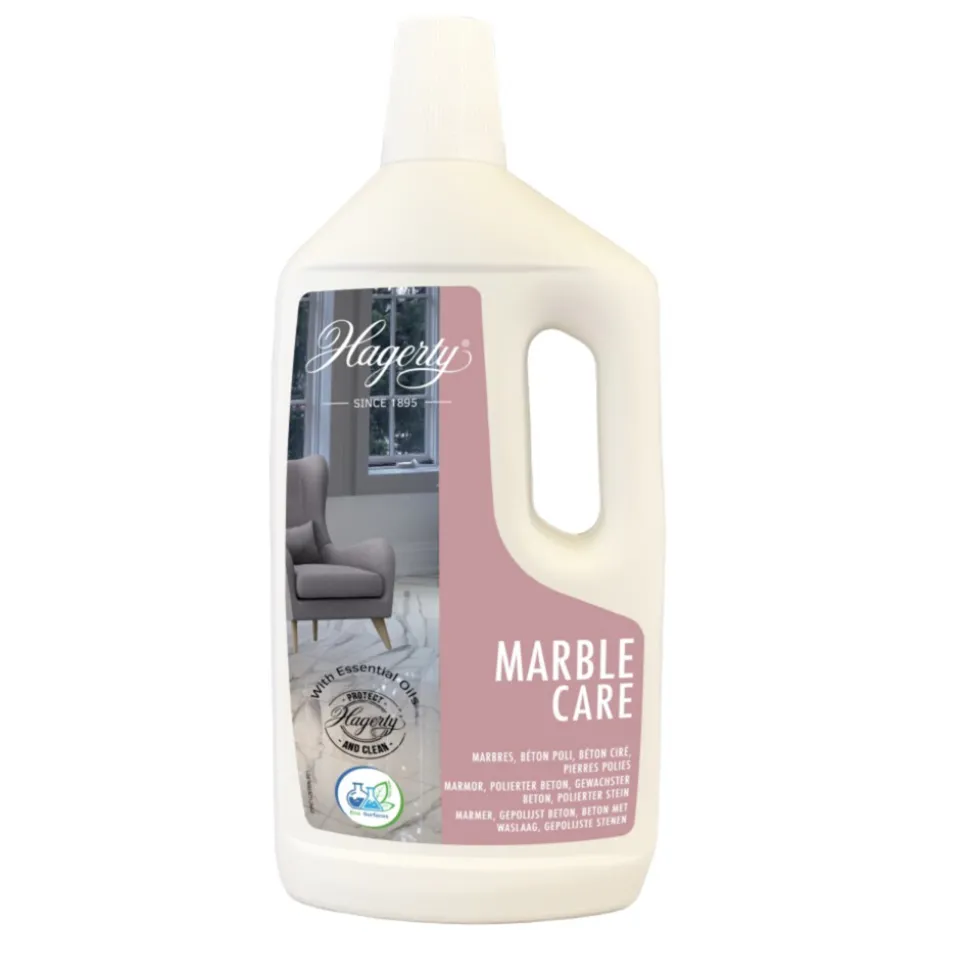 Voeg 25ml Hagerty Marble Care reinigingsmiddel (1 dop) toe aan 4L warm water. Een poetsbeurt is niet nodig. Spoel de schoonmaakdoek of dweil vaak in de voorbereide oplossing en wring het uit voordat u de vloer opnieuw reinigt. Laat drogen.