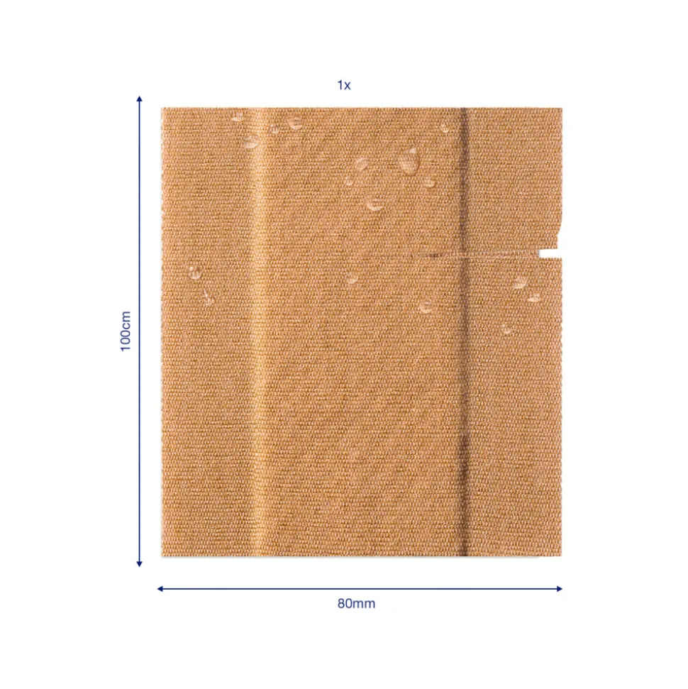 Het materiaal past zich aan de bewegingen van de huid aan, en het niet-klevende wondkussen beschermt de wond en fungeert als schokdemper. De sterke kleefkracht zorgt ervoor dat de pleister keurig rondom de wond blijft zitten.