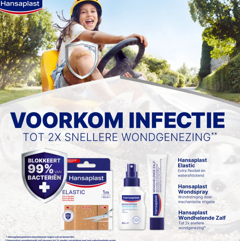 *Hansaplast pleisters blokkeren 99% van vuil en bacteriën.