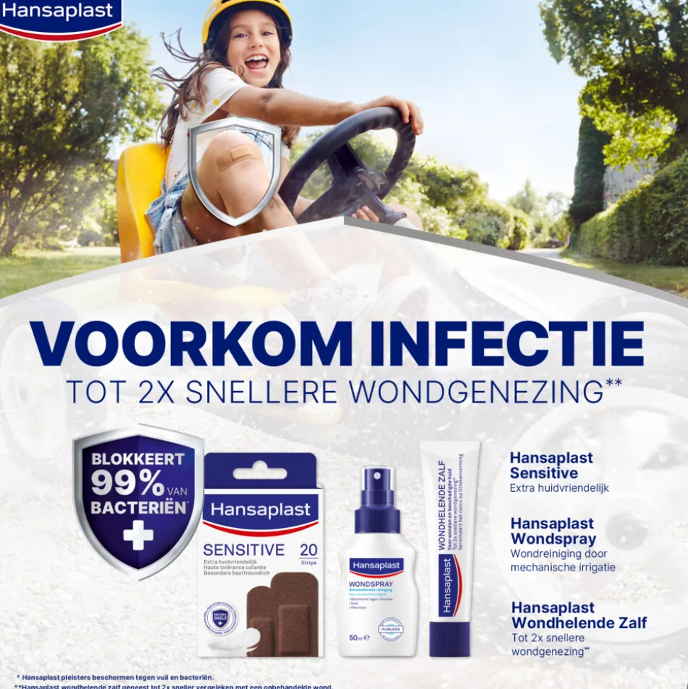 *Hansaplast pleisters blokkeert 99% van de bacteriën.