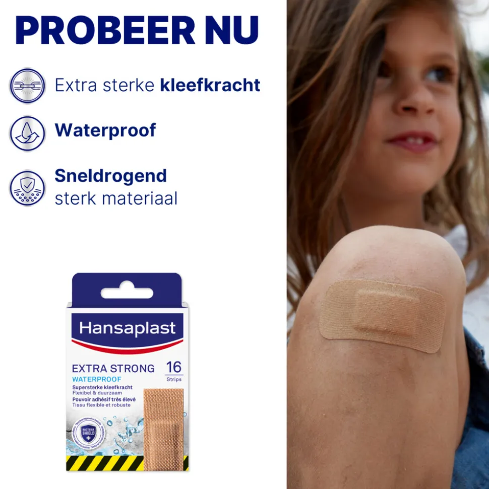 Deze pleisters zijn extra sterk. Daarnaast zijn ze ook nog eens waterbestendig. Hierdoor krijgt de wond altijd de beste verzorging van Hansaplast. Door de extra sterke kleefkracht blijven de pleisters altijd zitten. Handig als je dagelijks in de weer bent. Het sterke materiaal droogt snel waardoor er geen kleefkracht verloren gaat. Daarnaast biedt het een snellere en beter verzorging van de wond.