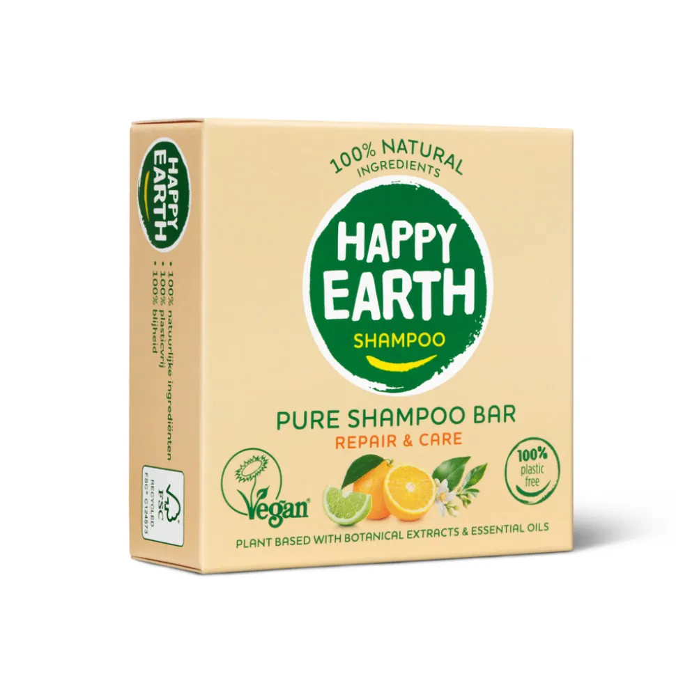 Een shampoo bar is niet alleen heel handig in het gebruik, maar ook een super duurzaam alternatief voor shampoo in flessen! De bars van Happy Earth bevatten alleen 100% natuurlijke ingrediënten die zijn gecertificeerd door COSMOS. Daarnaast bevat de shampoo 0% SLS/SLES en is deze zeepvrij, zodat je zeker weet dat je geen schadelijke producten aanbrengt op je haar. Deze shampoo is speciaal ontwikkeld voor droog en beschadigd haar. De bar verzorgt en herstelt het haar met sheaboter en jojoba-olie. De shampoo heeft een heerlijk natuurlijk parfum met een combinatie van sinaasappel en limoen. Na gebruik van de shampoo zijn je haren zacht, makkelijk doorkambaar en ruiken heerlijk! Dit product is, net als alle andere producten van Happy Earth, gecertificeerd vegan en microplasticvrij. De shampoo bar is zero waste en 100% plasticvrij. Daarnaast is het gebruik van een bar een stuk duurzamer in het gebruik: 1 bar = 3x 200ml flessen shampoo!