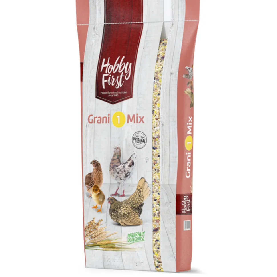 HobbyFirst Grani 1 Mengeling is een uitstekend aanvullend voeder voor de Farm-voeders. Deze extra fijne graanmengeling bestaat uit zorgvuldig geselecteerde granen, verrijkt met smakelijke zaden en extra fijne maïs. De fijne structuur zorgt voor een vlotte opname, wat het ideaal maakt voor kuikens, kwartels en duiven. De uitgebalanceerde samenstelling voorziet in de nodige voedingsstoffen voor een gezonde groei en ontwikkeling. Grani 1 Mengeling ondersteunt de algehele gezondheid en vitaliteit van je vogels.