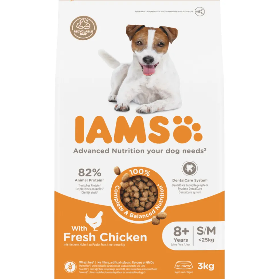 Iams for Vitality voor senior honden van kleine en middelgrote rassen is een 100% complete en uitgebalanceerde specialistische voeding die de gezondheid en vitaliteit van jouw hond op 7 punten ondersteunt, waaronder een goede spijsvertering. Dit alles zit in een heerlijk recept met 82% dierlijke eiwitten (van het totale eiwitgehalte), waar jouw huisdier elke dag weer van kan genieten.