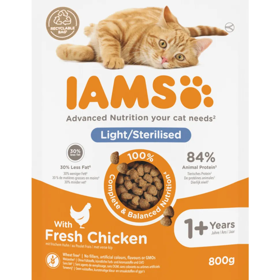 Iams Kat Adult Sterilised – Overweight Kip 800 gr