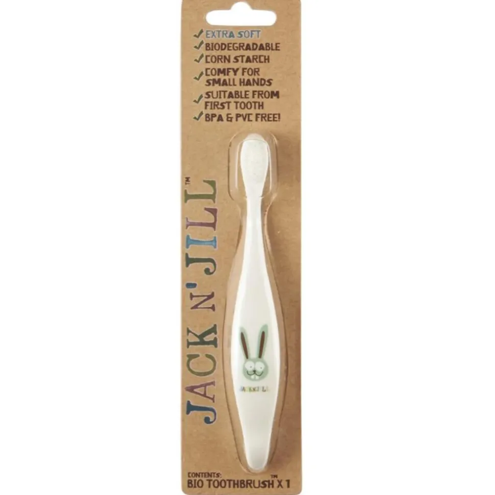 Jack N’ Jill Tandenborstel Bunny heeft een handvat dat voor 100% gemaakt is uit maiszetmeel en zachte, recycleerbare nylonharen. Het is de eerste in zijn soort, speciaal ontwikkeld voor kinderen van 2-6 jaar.
