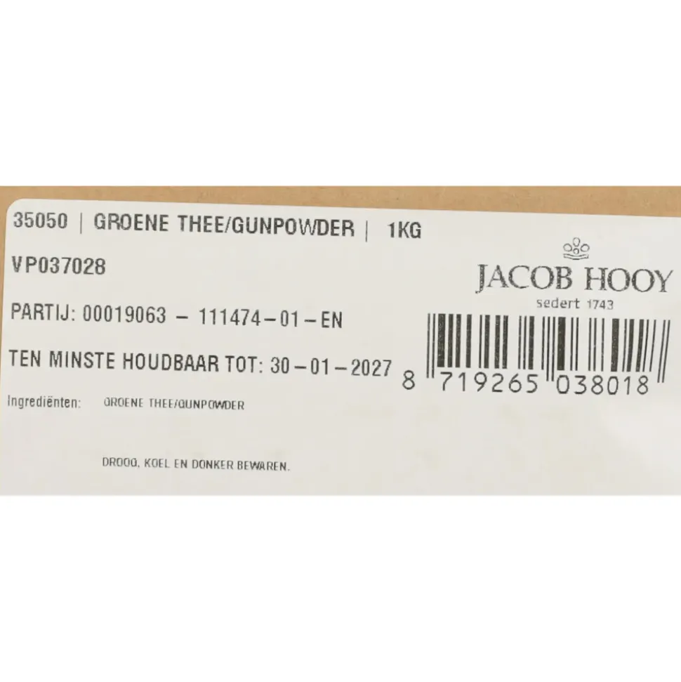 Jacob Hooy Groene Thee is afkomstig van de Theeplant Camellia sinensis. Bij de oogst worden alleen de jonge handmatig blaadjes geplukt. De oogst kan gedurende het gehele jaar plaatsvinden. Jacob Hooy Groene Thee is lekker, gezond en wordt in de Chinese geneeskunde al eeuwen gedronken vanwege de geneeskrachtige werking. Jacob Hooy Groene Thee ondersteunt de vetverbranding om op een gezond gewicht te kunnen blijven. Jacob Hooy Groene thee is afkomstig van de camelia sinensis. Bij de oogst van deze thee worden alleen de jonge blaadjes handmatig geplukt. Deze ondergaan, in tegenstelling tot zwarte thee, een minimale fermentatie. Deze soort wordt ‘gunpowder’ genoemd naar de opgerolde bladeren die in heet water openspringen. Gunpowder thee wordt in china al eeuwen gedronken en heeft een specifiek wat rokerige smaak.