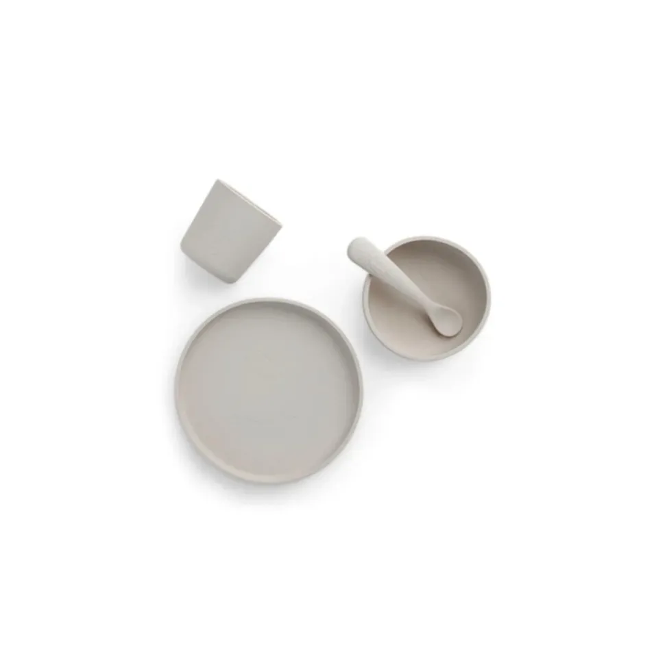 Het gehele kinderserviesset bestaat uit een bord, beker, kommetje en lepel en zijn gemaakt van 100% siliconen. 100% vrij van BPA, PVC, en PHTHALATES.