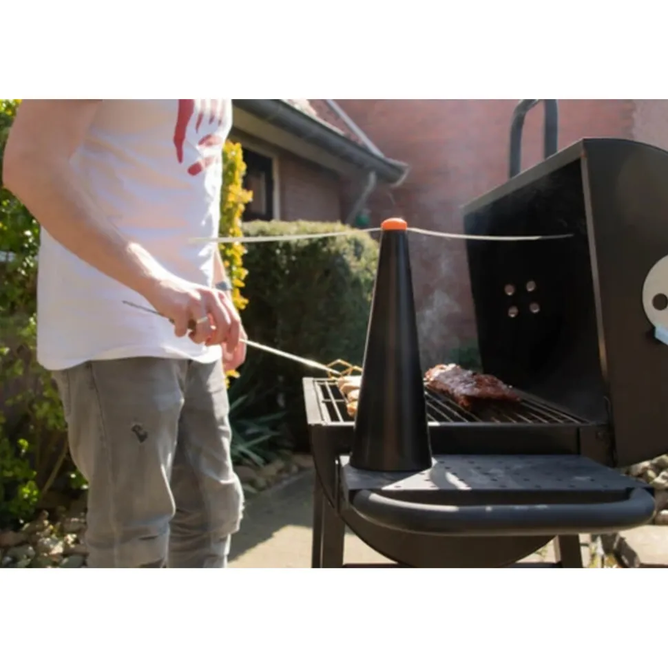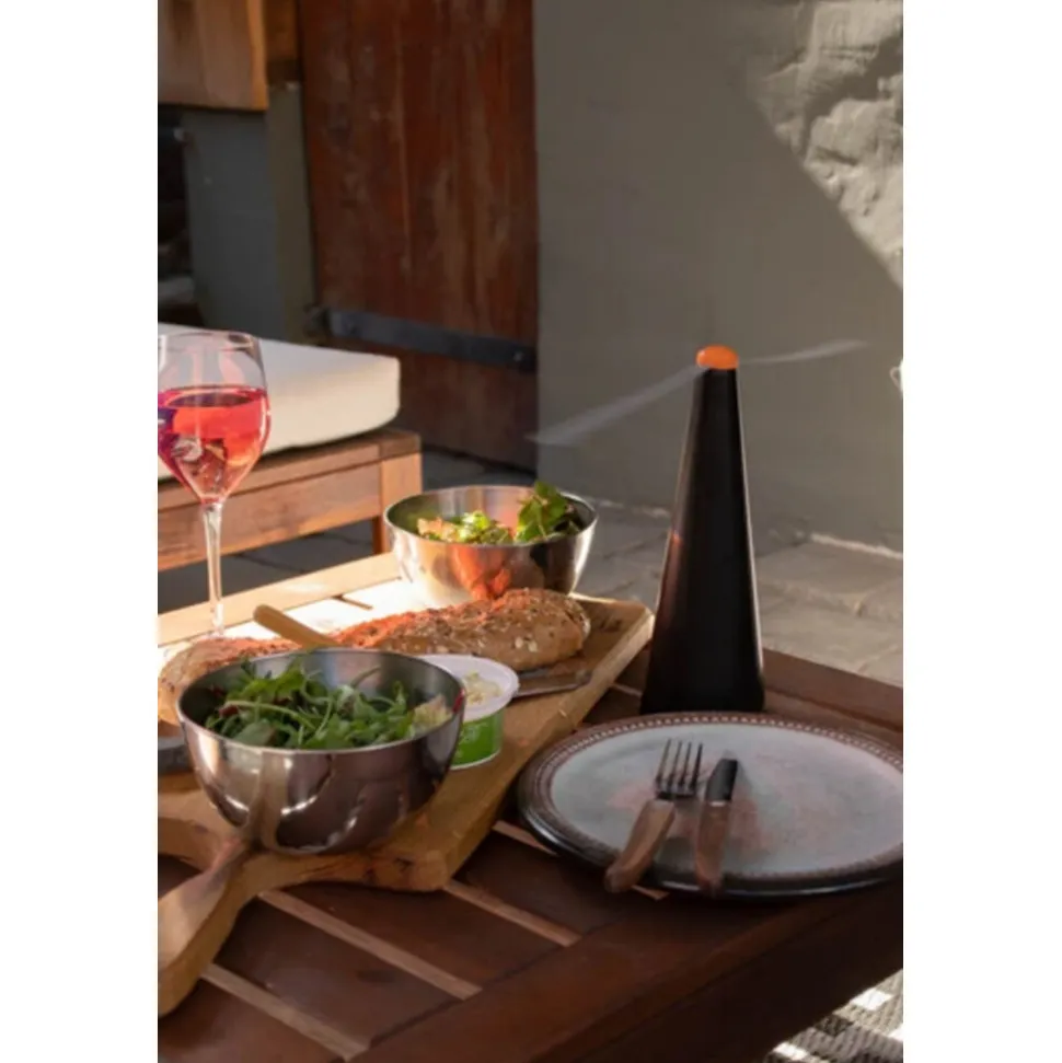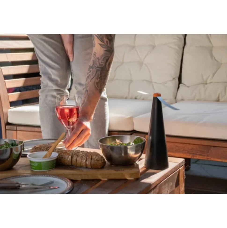 De Knock Off Vliegenverjager houdt vliegen veilig weg van voedsel. Zowel staand als hangend te gebruiken. Werkt ook tegen wespen. Twee bijna geruisloos ronddraaiende propellers zorgen voor luchtstroom waar vliegen een hekel aan hebben. De propellers zijn voorzien van holografische tekeningen en hebben een afschrikwekkende werking op insecten. Het apparaat stopt met draaien wanneer de zachte propellers worden aangeraakt. Voorzien van krachtige elektromotor en aan/uit schakelaar. Werkt op 2 AA batterijen (niet meegeleverd) of kan via het meegeleverd USB-laadsnoer en m.b.v. een adapter op het lichtnet worden aangesloten.