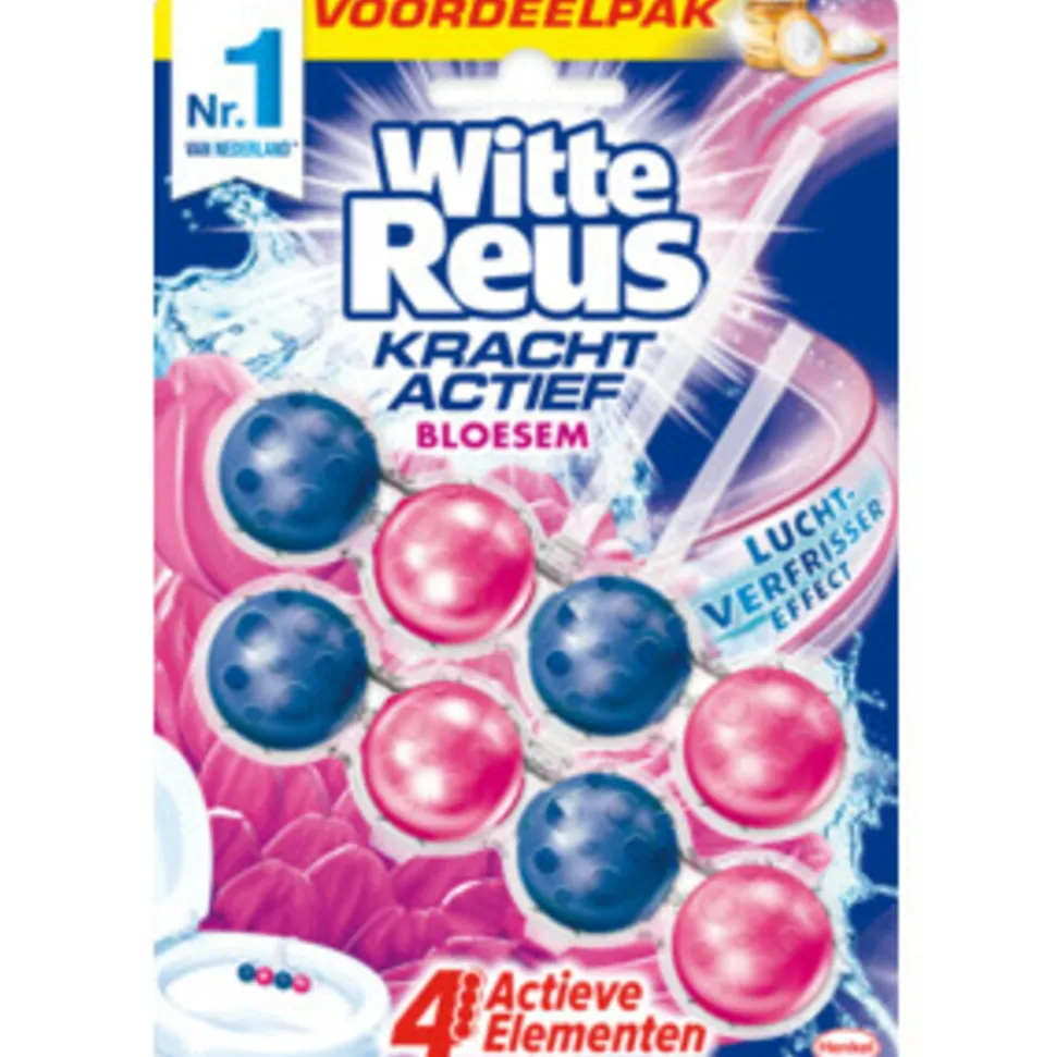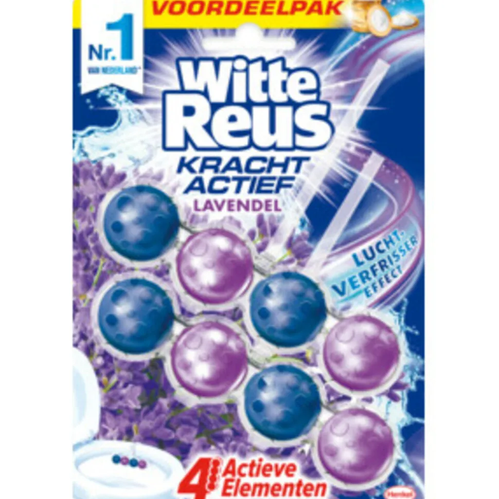 Op zoek naar een makkelijke manier om je toilet schoon en fris te houden? De toiletblokken van Witte Reus zorgen voor een schoon en fris toilet van de eerste tot de laatste spoelbeurt. De toiletblokken in dit pakket van Witte Reus bestaan uit een formule met 4 actieve functies: reinigend schuim, anti-kalk formule, vuilbeschermer en extra frisheid. De toiletreinigers bevatten het luchtverfrissereffect die ervoor zorgt dat de badkamer lange tijd met een frisse lavendel, oceaan en/of bloessem geur wordt gevuld.