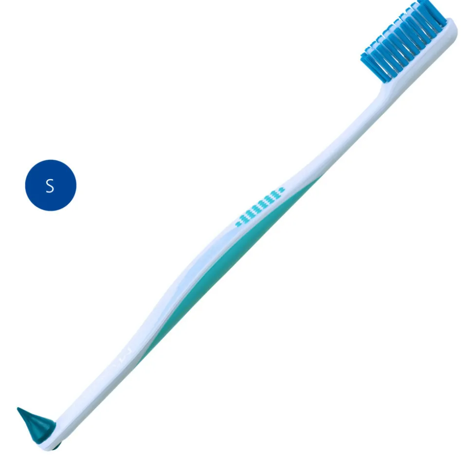 - Door dit recht en gepatenteerd multi-tufted borstel- oppervlak waarbij de afgeronde nylon filamenten dichtbij elkaar staan wordt, zover mogelijk, trauma aan tand- en tandvlees voorkomen