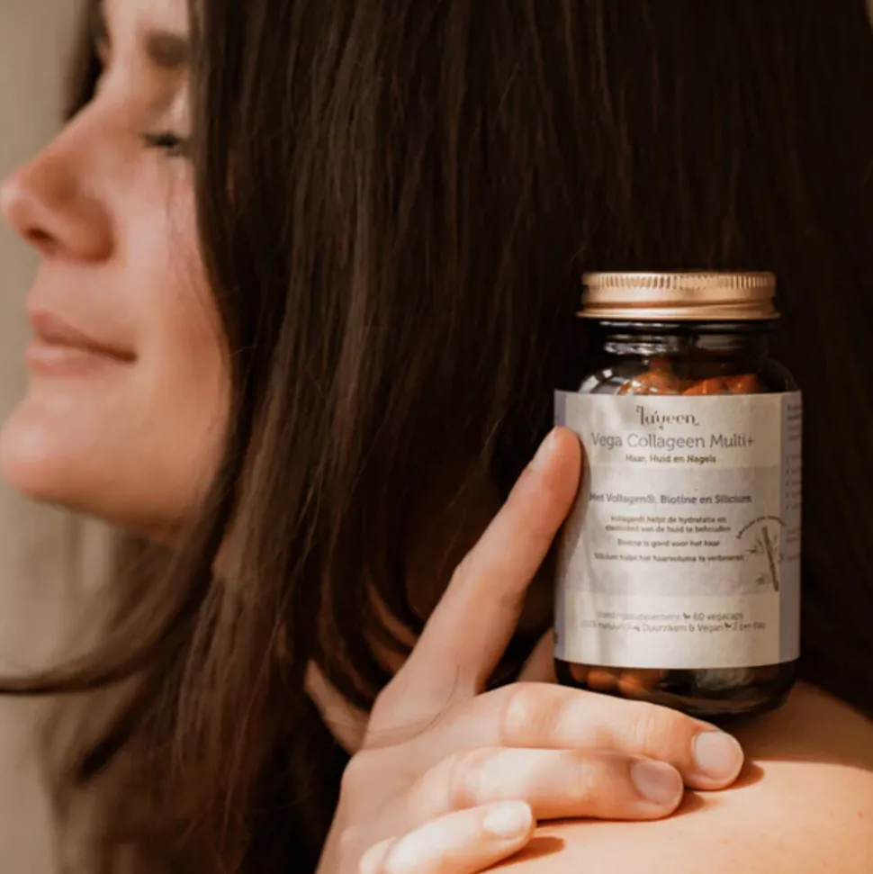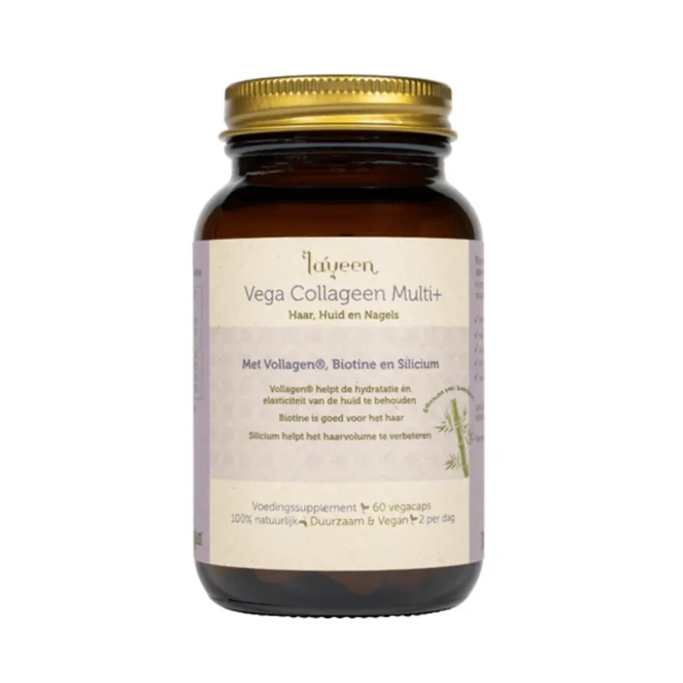 Laveen Vega Collageen Multi+ voor een stralende schoonheid van binnenuit. Dit innovatieve supplement combineert plantaardig collageen met een mix van vitamines en mineralen voor je huid, haar en nagels. In tegenstelling tot collageen, dat afkomstig is van dierlijke bronnen, is Vollagen 100% van plantaardige oorsprong. Vega Collageen Multi+ bevat een premium plantaardig collageencomplex, Vollagen, dat speciaal is ontworpen om de hydratatie en elasticiteit van je huid te behouden. Vollagen is een complex van aminozuren in dezelfde verhouding als die gevonden worden in collageen. Geschikt voor veganisten en vegetariërs.