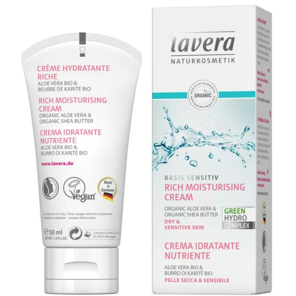 Elke dag intensieve vocht inbrengende verzorging met Lavera basis sensitiv rijke hydraterende crème.