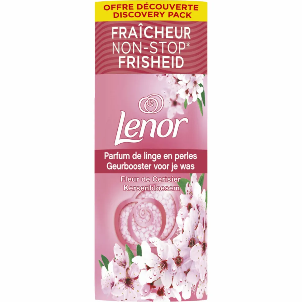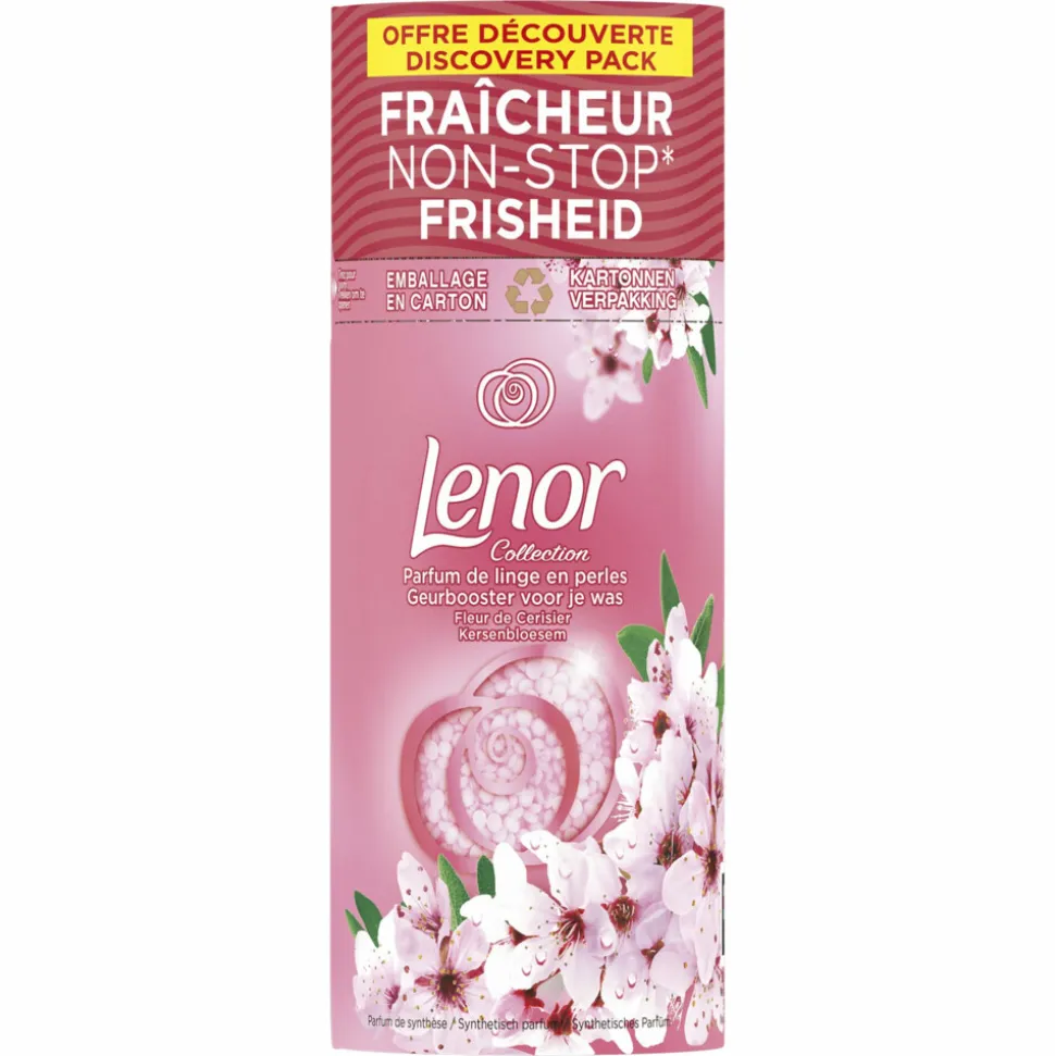 Ontdek de geurbooster voor je was van Lenor voor tot 12 weken langdurige frisheid in de kledingkast. Lenor geeft je kleding een heerlijke kersenbloesemgeur. Ontspan en herstel je balans. Delicate tonen van kersenbloesem creëren een gevoel van vredigheid en sereniteit. Lenor Kersenbloesem geurboosters voor je was zijn gecreëerd om in perfecte harmonie samen te werken met Lenor Kersenbloesem wasverzachter. Ze zijn elk betoverend op zichzelf… en onweerstaanbaar samen. Lenor geurboosters voor je was hebben voortaan een vochtbestendige, recyclebare kartonnen verpakking.