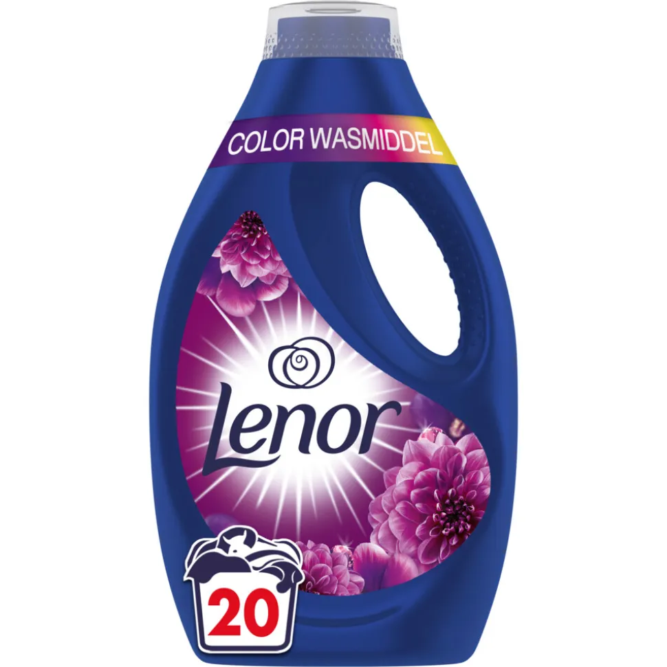 - Lenor vloeibaar wasmiddel wordt geleverd in een recyclebare fles met gerecycled plastic