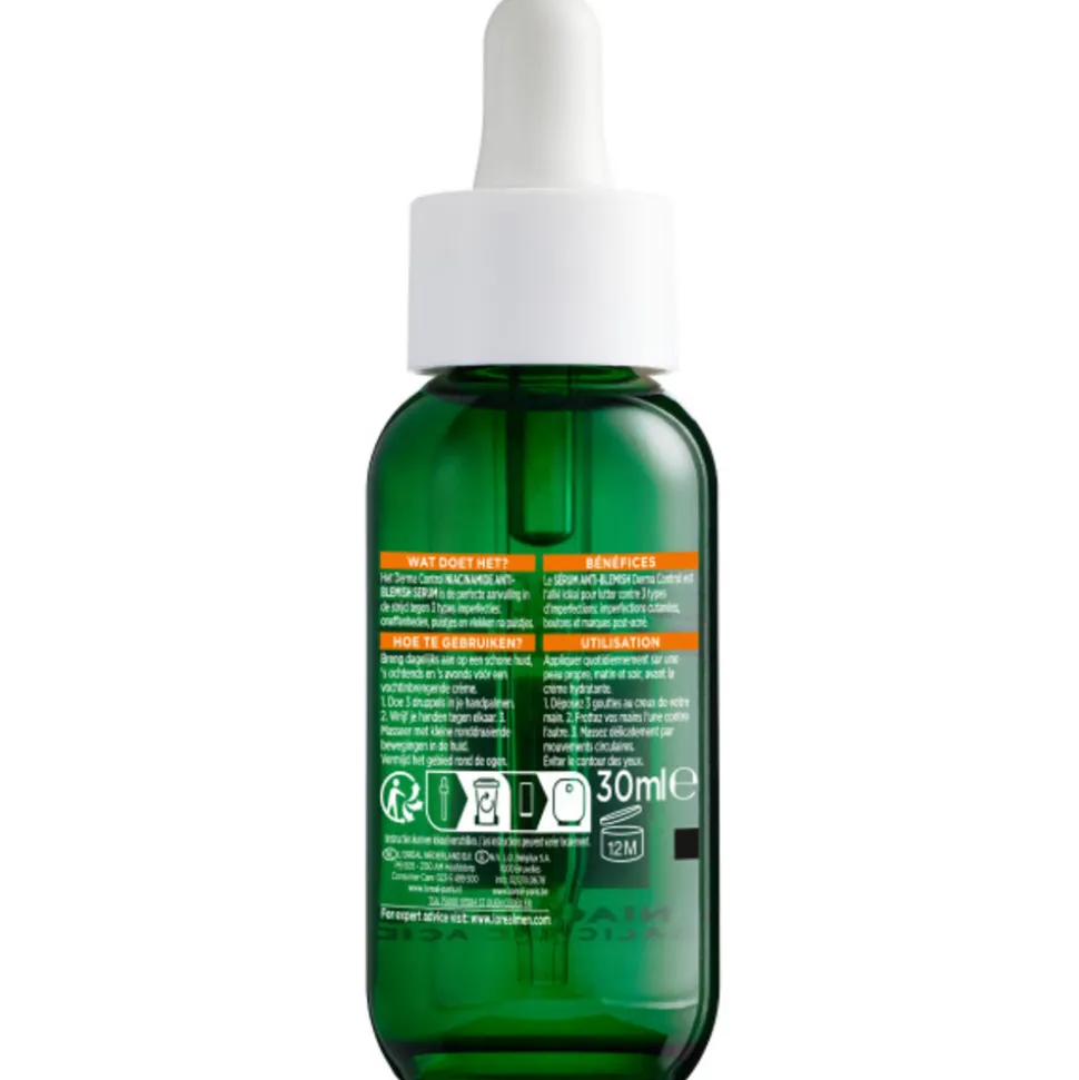 L’Oréal Paris Men Expert Derma Control Serum is een serum dat speciaal ontworpen is voor iedereen die last heeft van onzuiverheden, pigmentvlekken en acnelittekens. De formule met 3% niaciamide + salicylzuur vermindert talgproductie, waardoor de kans op puistjes en mee-eters afneemt. Het helpt ook pigmentvlekken te vervagen, waardoor de huid er egaler uitziet. De lichte, vloeibare textuur trekt snel in de huid zonder plakkerig gevoel na te laten. L’Oréal Paris Men Expert Derma Control Serum maakt deel uit van de Derma Control reeks, onze eerste reeks die goedgekeurd is door dermatologen.
