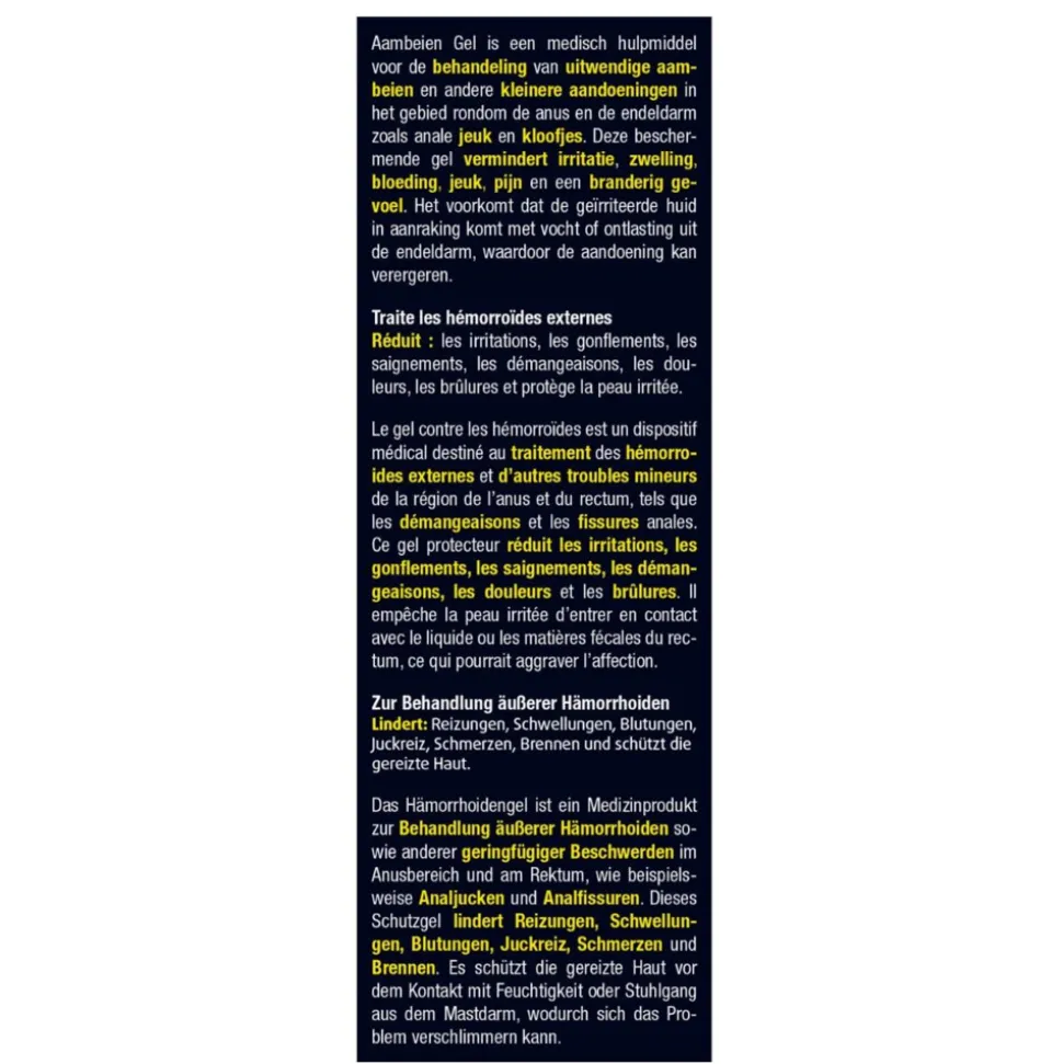 Buiten het bereik van jonge kinderen houden. Als u last krijgt van overgevoeligheidsreacties, stop dan met het gebruik van Aambeien Gel. Niet gebruiken na de uiterste gebruiksdatum die op de verpakking staat.