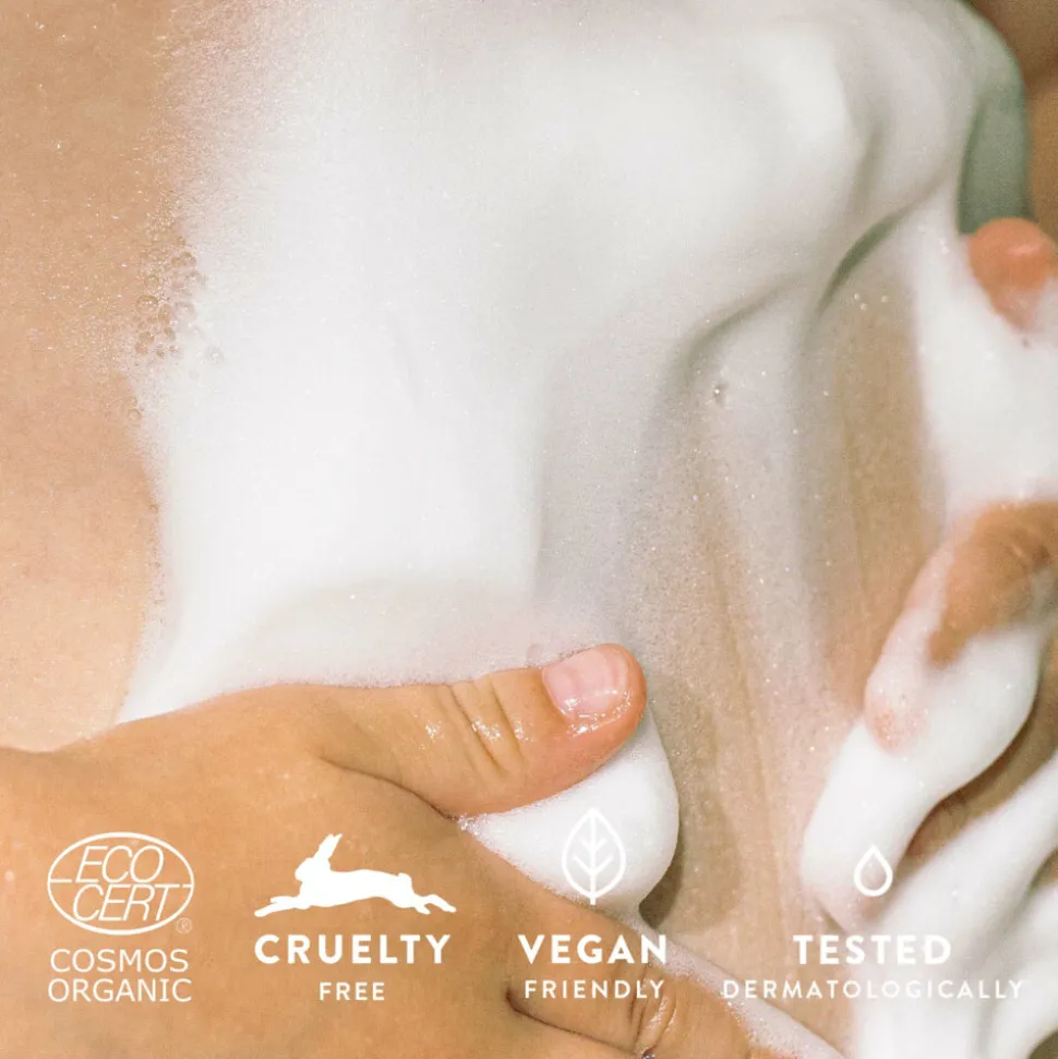 Dit biologisch gecertificeerde, wolkzachte reinigingsschuim reinigt de huid op milde wijze zonder haar natuurlijke vochtgehalte en beschermlaag aan te tasten. De milde, zeepvrije formule, verrijkt met kalmerende extracten van kamille en lijnzaad, verwijdert onzuiverheden en zorgt ervoor dat de huid aangenaam en gekalmeerd aanvoelt. Samengesteld voor het hele gezin, zacht genoeg voor baby’s. Dermatologisch getest en samengesteld zonder agressieve oppervlakteactieve stoffen, synthetische geurstoffen en kunstmatige kleurstoffen.