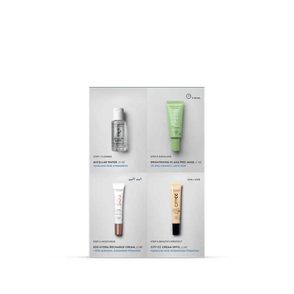 Ontdek de transformerende kracht van biologische huidverzorging met deze vierdelige set in ontdekkingsformaat met basisproducten van MÁDARA, ontworpen om je huid te verzorgen met ingrediënten uit de noordelijke natuur. Geweldig om uit te proberen en voor onderweg. Haal meer waarde uit deze 4-in-1 set.