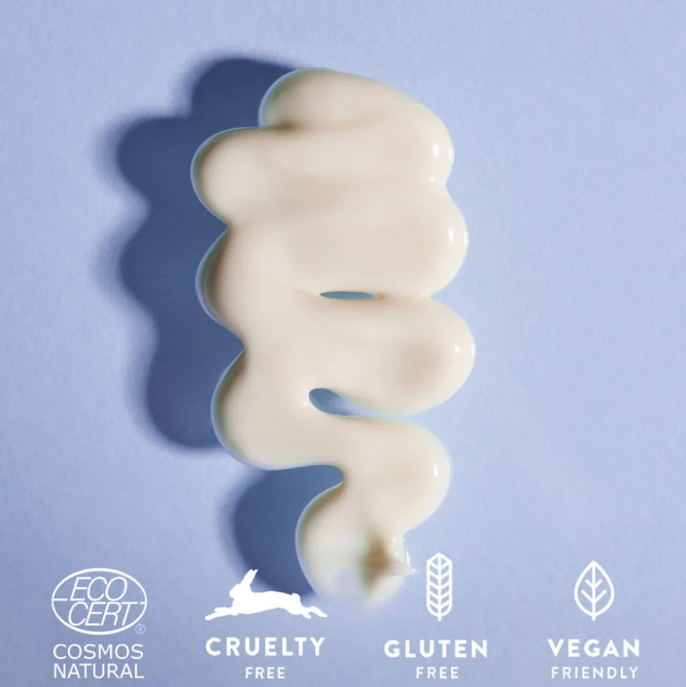 BETULA ALBA (BIRCH) JUICE*, SIMMONDSIA CHINENSIS (JOJOBA) SEED OIL, GLYCERIN**, GLYCERYL STEARATE CITRATE, PENTYLENE GLYCOL, CETEARYL ALCOHOL, CAPRYLIC/CAPRIC TRIGLYCERIDE, ISOAMYL LAURATE, RICINUS COMMUNIS (CASTOR) SEED OIL, BETAINE, DIPALMITOYL HYDROXYPROLINE, SODIUM PCA, RHUS VERNICIFLUA PEEL CERA/RHUS SUCCEDANEA FRUIT CERA, HIPPOPHAE RHAMNOIDES (SEA BUCKTHORN) FRUIT EXTRACT*, TRIFOLIUM PRATENSE (RED CLOVER) FLOWER EXTRACT*, ORYZA SATIVA (RICE) BRAN OIL, VEGETABLE OIL, CENTAUREA CYANUS (CORNFLOWER) FLOWER EXTRACT*, ALCHEMILLA VULGARIS (LADY’S MANTLE) EXTRACT*, GALIUM VERUM (LADY’S BEDSTRAW/MADARA) EXTRACT*, VACCINIUM MYRTILLUS (BLUEBERRY) FRUIT EXTRACT*, DICAPRYLYL CARBONATE, HELIANTHUS ANNUUS (SUNFLOWER) SEED WAX, ORYZA SATIVA (RICE) BRAN WAX, RHUS SUCCEDANEA FRUIT WAX, BEHENYL ALCOHOL, GLYCERYL BEHENATE, XANTHAN GUM, BUTYROSPERMUM PARKII (SHEA) BUTTER*, LECITHIN, AROMA, CELLULOSE, TOCOPHEROL, MYRISTYL ALCOHOL, ASCORBYL PALMITATE, AESCULUS HIPPOCASTANUM (HORSE CHESTNUT) SEED EXTRACT*, EQUISETUM ARVENSE (HORSETAIL) EXTRACT*, POTASSIUM HYDROXIDE, AQUA, HYDROLYZED HYALURONIC ACID, SODIUM HYALURONATE, SODIUM PHYTATE, LAVANDULA STOECHAS EXTRACT*, VITIS VINIFERA (GRAPE) LEAF EXTRACT*, COPERNICIA CERIFERA CERA, GINKGO BILOBA (GINKGO) LEAF EXTRACT, HELIANTHUS ANNUUS (SUNFLOWER) SEED OIL, CITRONELLOL***, GERANIOL***, LINALOOL***, LIMONENE***, BENZYL SALICYLATE*** *Ingredients from Organic Farming **Made using organic ingredients ***From Natural essential oils 99% Natural origin of total 76% Organic of total