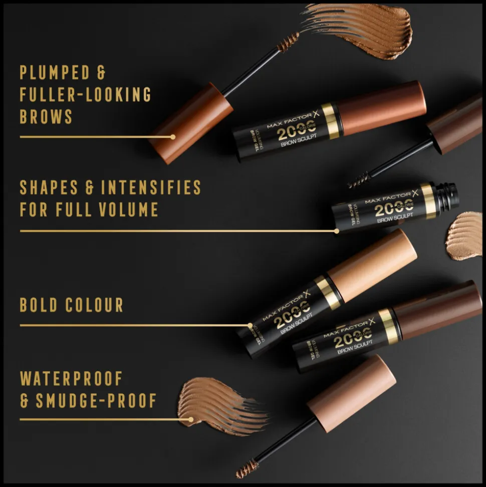 Laat je wenkbrauwen er volumineus vol uitzien met de Max Factor 2000 Calorie Brow Sculpt Volumising Brow Gel. Deze getinte wenkbrauwgel brengt de wenkbrauwen in model en benadrukt het volumineuze resultaat. De wenkbrauwen zien er meteen voller uit. De formule van deze wenkbrauwgel loopt niet uit en is makkelijk aan te brengen. Het gedurfde kleurresultaat blijft bovendien voor een lange tijd mooi zitten. Breng je wenkbrauwen in model en vul kale plekjes op met het miniborsteltje. Verkrijgbaar in 4 getinte versies en één transparante versie.