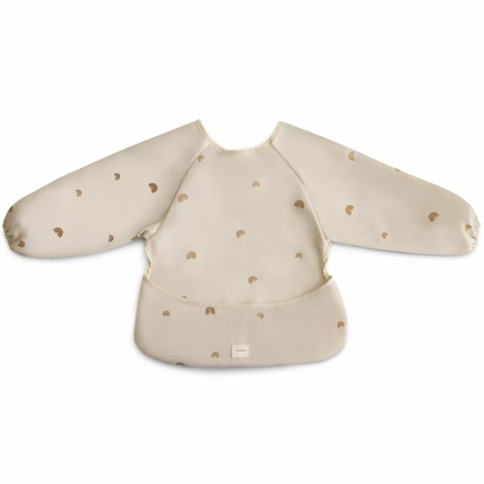 Houd de kinderen schoon tijdens het eten, tijdens het knutselen of op andere rommelige momenten met het waterbestendige slabbetje met lange mouwen van Mushie. De brede zak vangt gemakkelijk voedsel op, terwijl het slabbetje goed blijft zitten en outfits volledig bedekt. Met een klittenbandsluiting aan de achterkant van de hals heeft het een perfecte maat voor kleintjes tussen de 6 en 24 maanden. Ouders waarderen het afveegbare materiaal dat ook veilig is voor de wasmachine, zodat je de hele dag zonder kledingvlekken kunt doorbrengen.