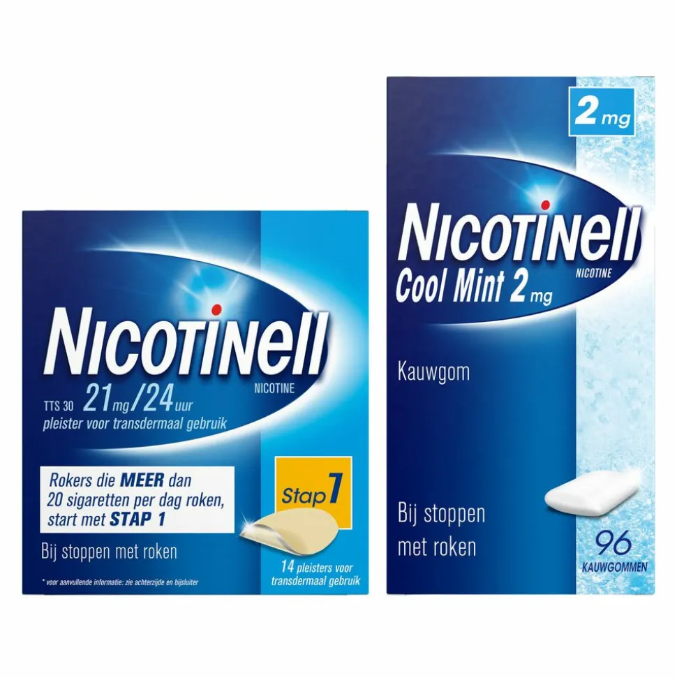• Je rookt meer dan 30 sigaretten per dag: Nicotinell pleister Stap 1, 21 mg pleister per 24 uur gedurende 3-4 weken • Je rookt tussen de 20-30 sigaretten per dag: Nicotinell pleister Stap 2, 14 mg pleister per 24 uur gedurende 3-4 weken.
