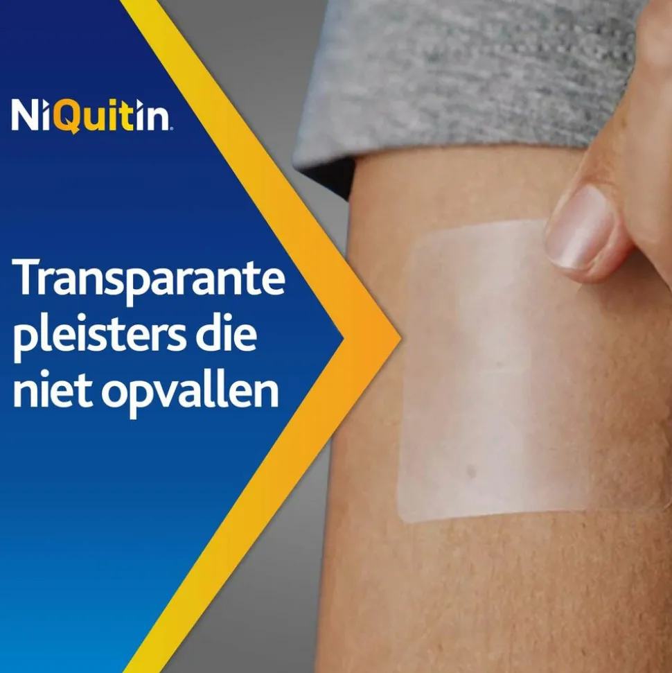 NiQuitin Clear Pleister stap 1 gebruik je als je wilt stoppen met roken. De werkzame stof in NiQuitin Clear is nicotine. De nicotinepleister fungeert als tijdelijk hulpmiddel dat kan helpen om de kans van slagen te vergroten. Het werkt ter verlichting van onthoudingsverschijnselen van nicotine als gevolg van stoppen met roken. NiQuitin Clear pleisters zijn transparante, rechthoekige pleisters met constante afgifte, die over een periode van 24 uur door de huid heen een constante hoeveelheid nicotine aan het lichaam afgeven.