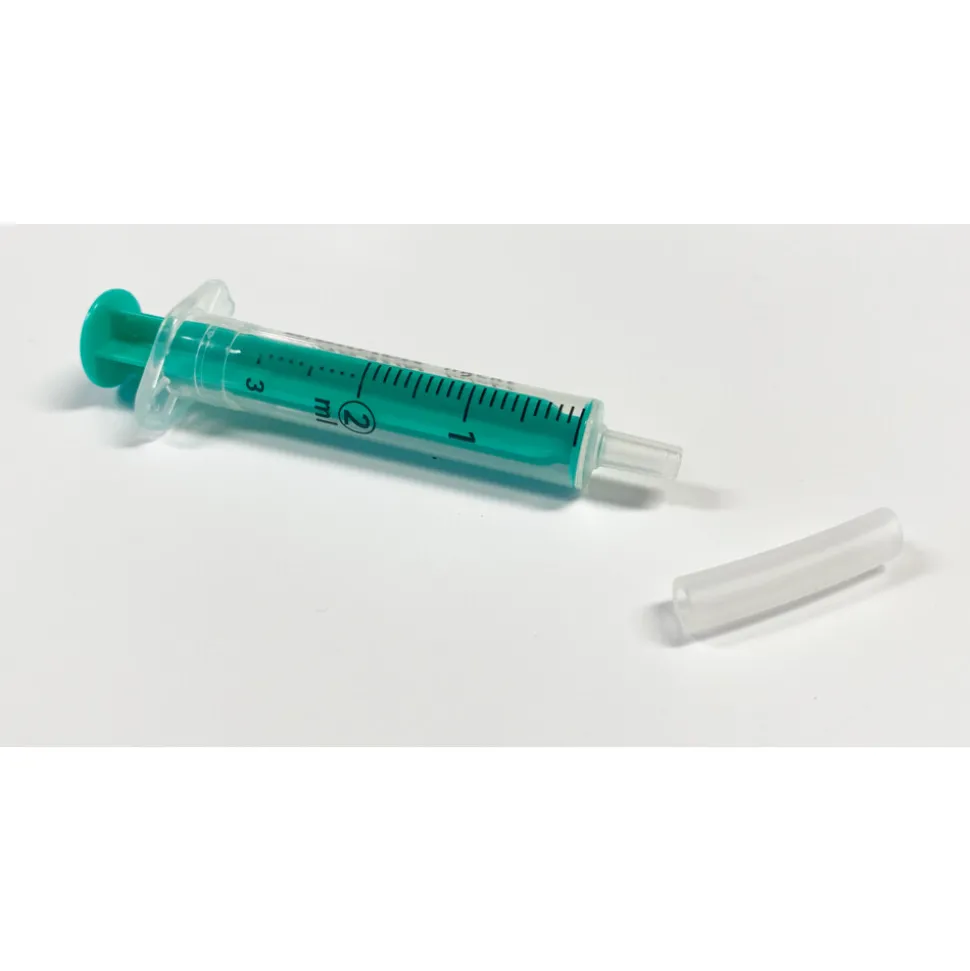 - Duw het fijndoseerspuitje op het verbindingsstukje.